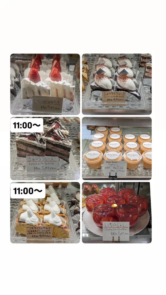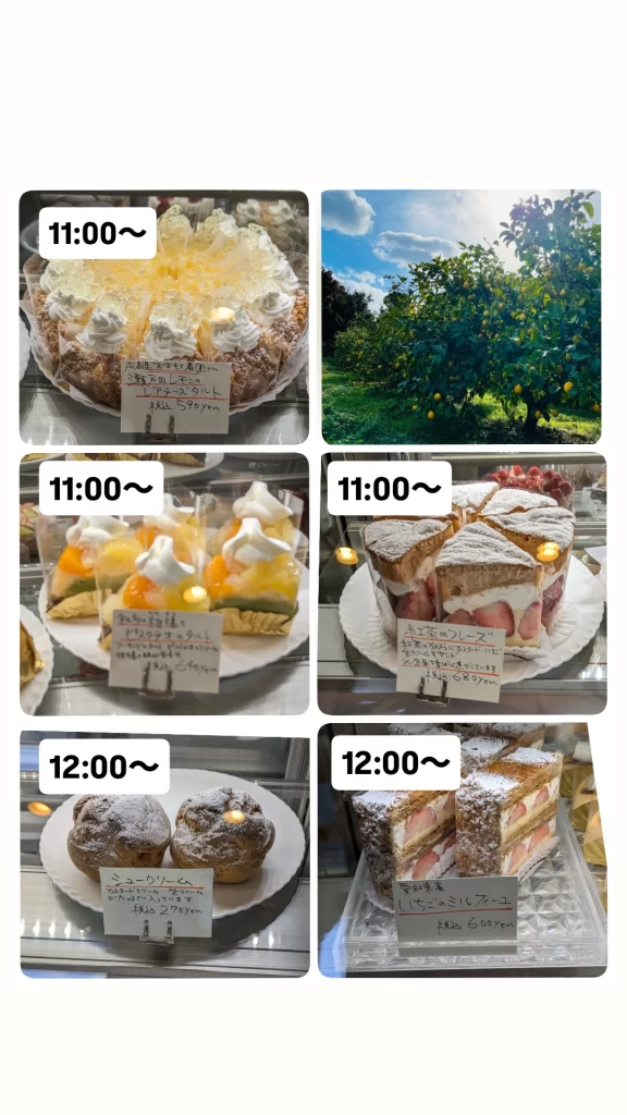 ケーキによってお渡しできる時間が違います。ご予約は確実にご用意できる時間でお伺いしています